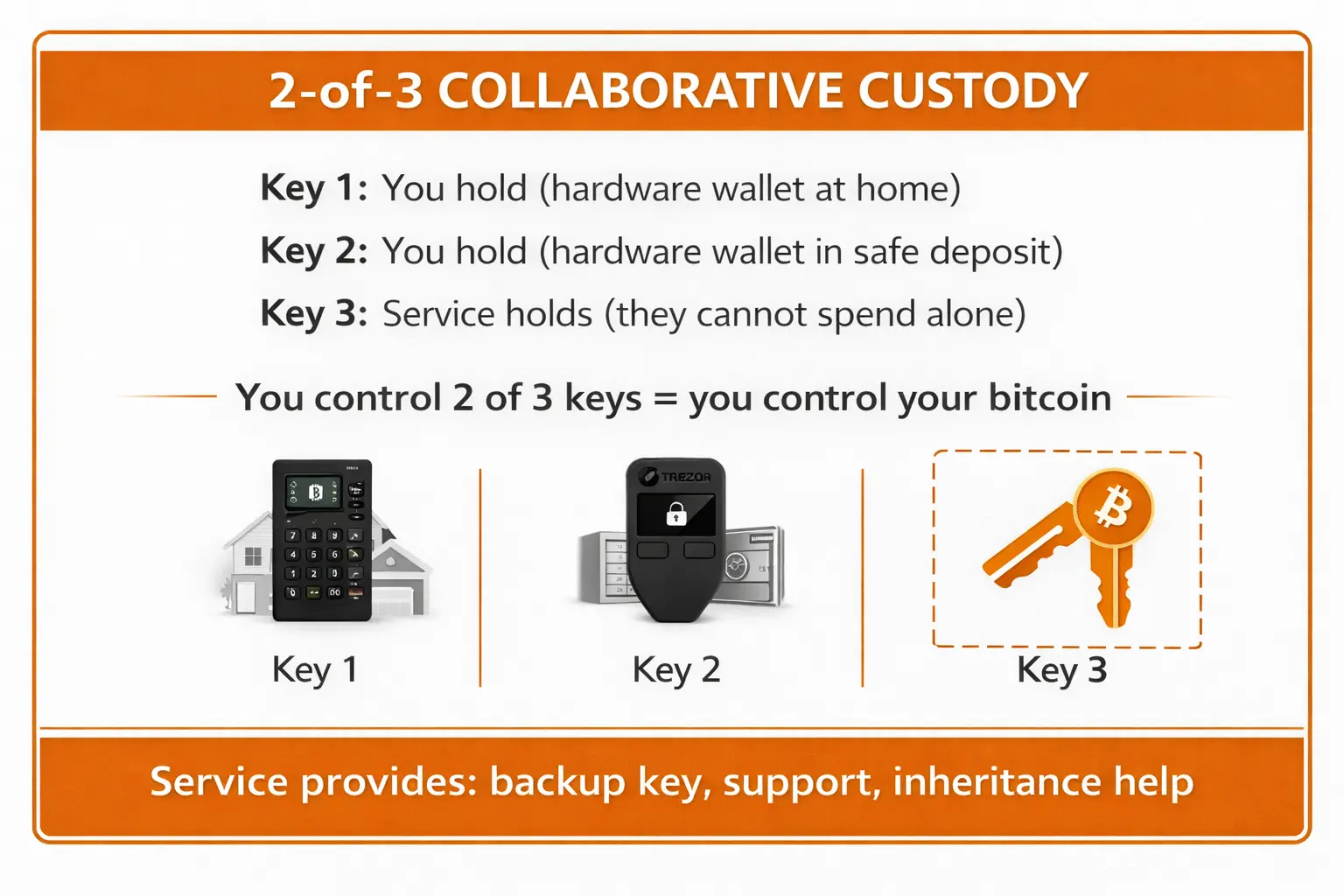 Don't want to manage all keys yourself? Collaborative custody providers hold one key while you hold the majority.
