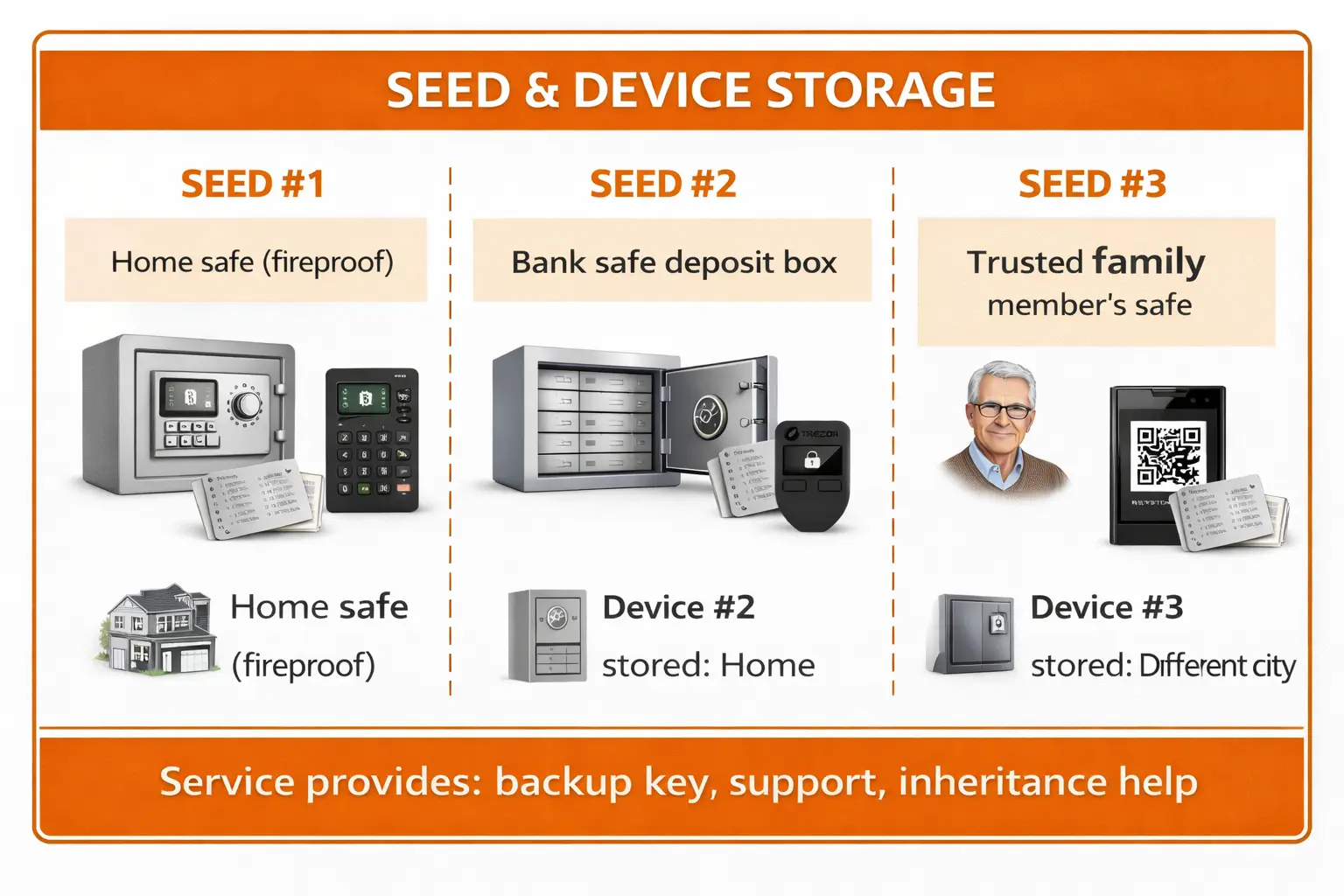 - Consider writing PINs down separately from seeds (stored in different locations)